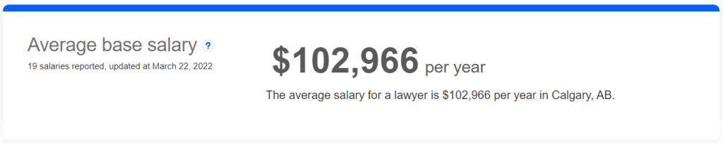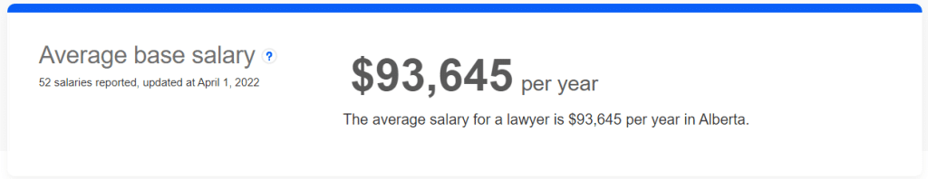 (1) https://www.glassdoor.ca/Salaries/alberta-lawyer-salary-SRCH_IL.0,7_IS4074_KO8,14.htm?clickSource=searchBtn