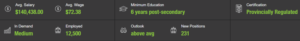 If we search further for more information, we can also find the Alberta ALIS website, which has information gathered in the year 2019. Note, however, that this collection of data is pre-pandemic, and may no longer reflect the current economic reality of Alberta.